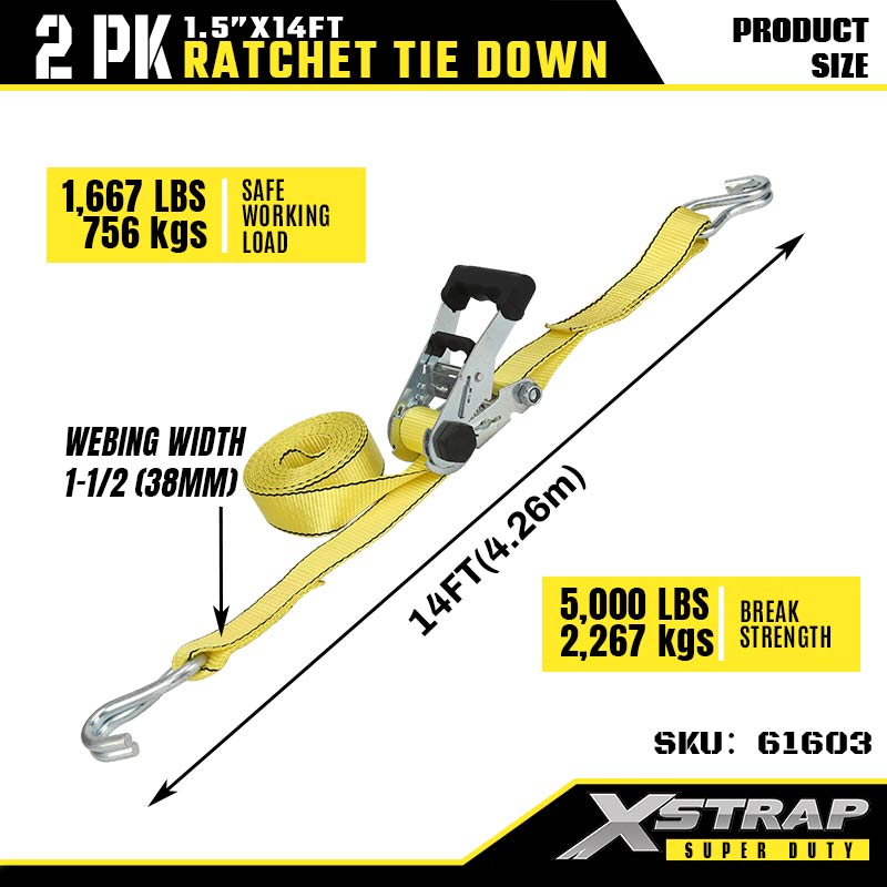 1-1/2인치 x 14' 2PK 래칫 타이다운