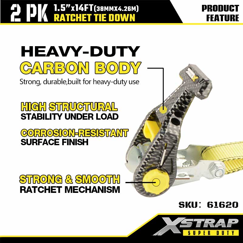 - 부드러운 탄소 섬유 래칫 작동: 투박한 금속 래칫을 건너뛰세요. 탄소 섬유 본체는 강하면서도 가벼우며, 부드러운 메커니즘을 통해 한 손으로 몇 초 만에 무거운 짐을 조이고 고정할 수 있습니다. 처음 사용하는 사용자라도 추가 도구 없이도 단단히 고정할 수 있습니다.